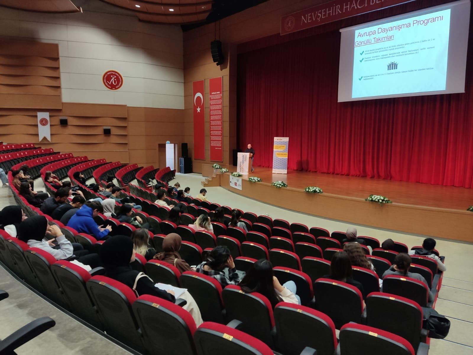 Nevşehir Hacı Bektaş Veli Üniversitesi Kültür ve Kongre Merkezi Damat İbrahim Paşa Salonunda, Erasmus+ fırsatları kapsamında gençlik, dayanışma ve yükseköğretim projelerini keşfetmek üzere üniversitenin hevesli gençlerini bir araya getirdi.
