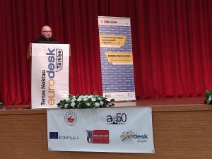 Eurodesk Nevşehir Temas Noktası olarak, Nevşehir Milli Eğitim Müdürlüğü Ar-Ge Biriminde görevli öğretmenlerimiz ve Nevşehir Hacı Bektaş Veli Üniversitesi Uluslararası İlişkiler Ofisi’nde görev yapan öğretim görevlilerinin katkısıyla gençler için eğitim ve gençlik alanlarındaki Avrupa fırsatları ve gençlerin Avrupa faaliyetlerine katılımı hakkında sunum gerçekleştirildi.