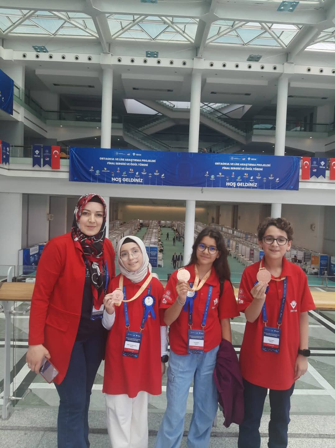 TÜBİTAK Bilim İnsanı Destek Programları Başkanlığı (BİDEB) tarafından ortaokul öğrenimine devam etmekte olan öğrencileri; temel, sosyal ve uygulamalı bilim alanlarında çalışmalar yapmaya teşvik etmek, çalışmalarını yönlendirmek ve mevcut bilimsel çalışmalarının gelişimine katkı sağlamak amacıyla düzenlenen 2204-B Ortaokul Öğrencileri Araştırma Projeleri yarışmasına ilimizden Nevşehir Halil İncekara Bilim ve Sanat Merkezi öğrenci ve danışman öğretmeni katıldı. Yarışma 25-28 Mayıs 2025 tarihleri arasında Ankara’da düzenlendi. Yarışmada öğrencilerimiz Talha Başal, Ilgın Özmen, Ümmü Gülsüm Çakıllı’nın öğretmenimiz Ayşe Kayaalp danışmanlığında hazırlamış oldukları Tarih Alanında ‘Nevşehir Geleneksel Oyunları: Kültürel Miras ve Tasarım Tesciliyle Geleceğe Taşıma’ adlı projeleriyle Türkiye 3.sü oldu.