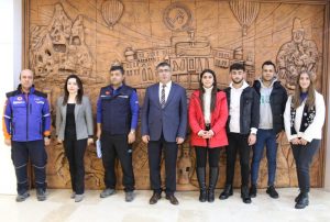 Nevşehir il Afet ve Acil Durum Müdürlüğü Müdür V. Sait Uyar ve beraberindeki Gönüllü Koordinatörü Ömür İven, Nevşehir Hacı Bektaş Veli üniversitesi AFAD Kulübü Danışmanı Doç. Dr. Şenay Güngör, Destek AFAD gönüllüleri Hamide Dilek Aydın, Mehmet Caymaz, İsmet Soymaz, Esmanur Güzelgül’den oluşan heyet, ziyaretlerinde NEVÜ Rektörü Prof. Dr. Semih Aktekin’e vermiş oldukları destekten dolayı teşekkür ederek kendilerine gerçekleştirdikleri çalışmalar hakkında bilgi verdi.