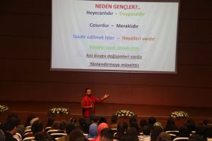 Konferansta Nevşehir İl Emniyet Müdürlüğü Terörle Mücadele Şube Müdürlüğü ekipleri “El Ele Güvenli Geleceğe” projesi ve bilgilendirme ile önleme faaliyetleri kapsamında, terör örgütlerinin öğrenciler üzerindeki etkilerini kırmak ve örgütlerin eleman kazanmasının engellenmesi amacıyla bilgilendirmede bulundu.