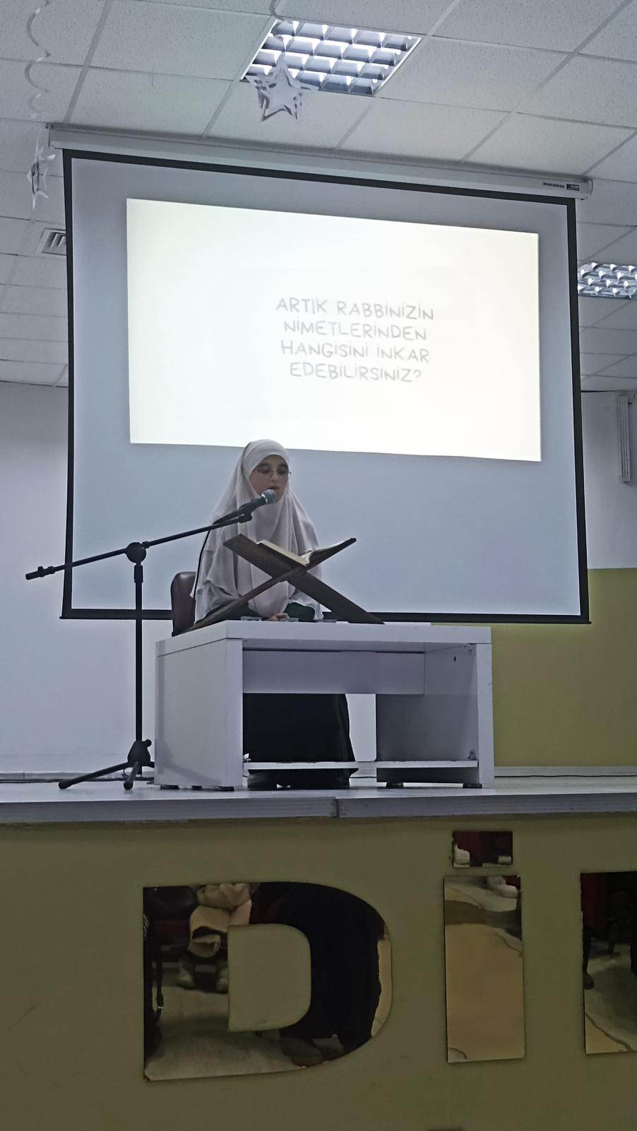 Genç Nida Kız Öğrenciler Arası Kuranı Kerimi Güzel Okuma Yarışması İl Finali sonucunda; Recep Tayyip Erdoğan Anadolu İmam Hatip Lisesi öğrencisi Fatmanur TOPRAK birinci,