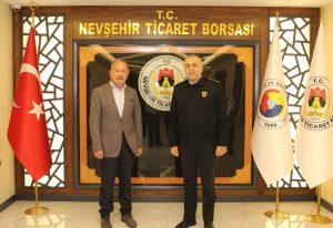 Nevşehir İl Jandarma Alay Komutanı J. Kd. Albay Bahittin Murat Yakın, Nevşehir Ticaret Borsası Başkanı İbrahim Salaş’ı makamında ziyaret etti.