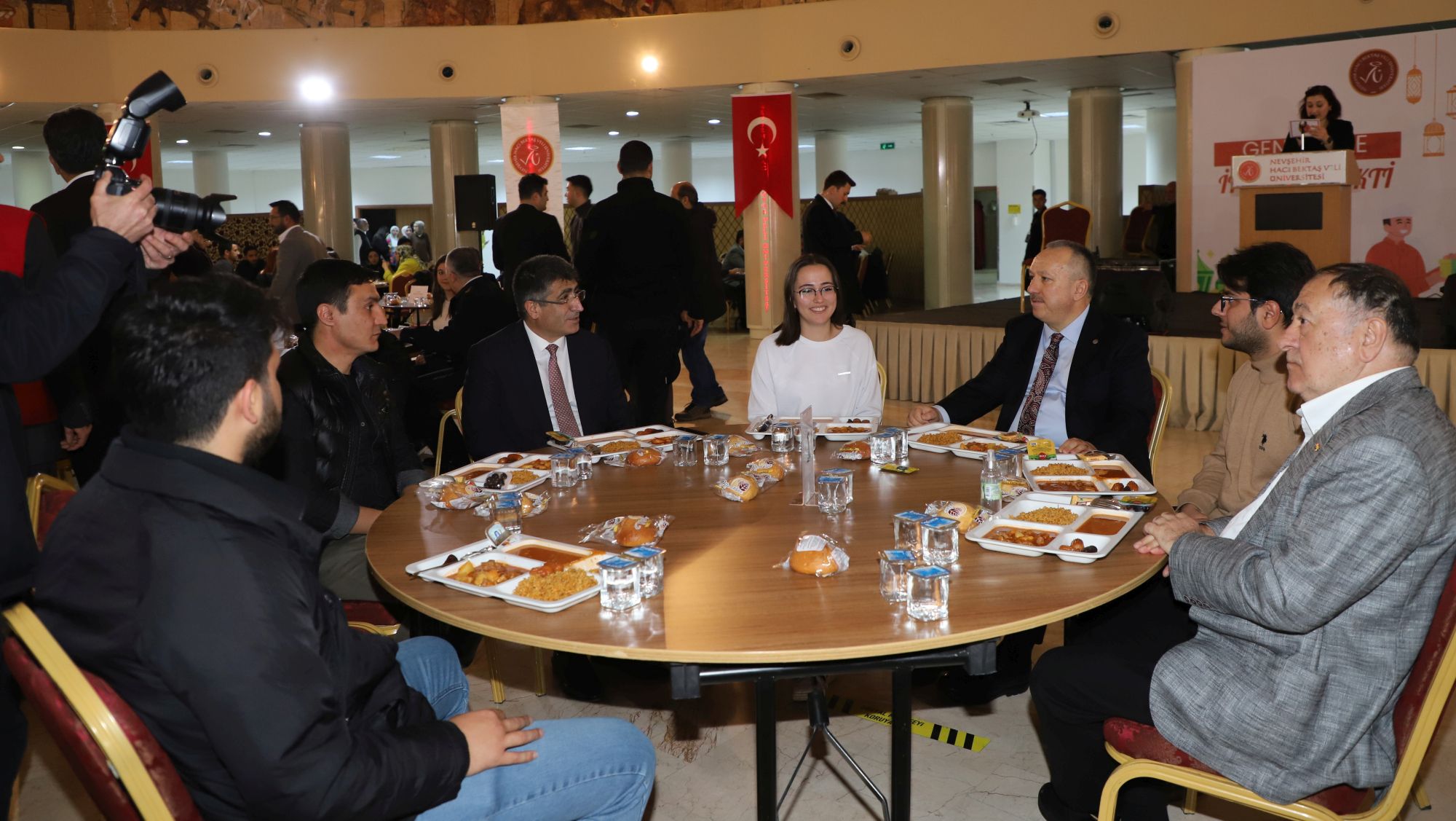 Nevşehir il protokol heyeti ve hayırseverler, Nevşehir Hacı Bektaş Veli Üniversitesi (NEVÜ)’de eğitim gören öğrencilere yönelik ‘İftar Sofrasında Öğrencilerimizle Ramazan Sevincini Paylaşıyoruz’ teması ile düzenlenen ‘Ramazan Ayı İftar Programı’ kapsamında öğrencilerle bir araya gelerek iftar yaptı.