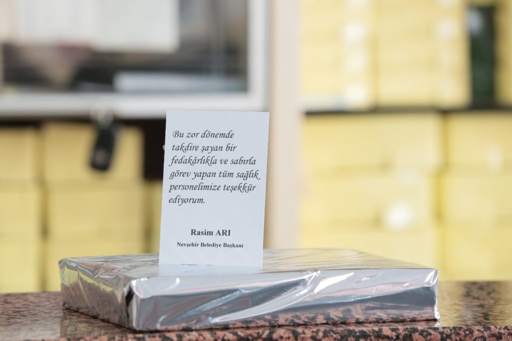 Nevşehir İl Sağlık Müdürü Dr. Rahim Ünlübay; “Tüm Sağlık Personelimize, çalışmalarında moral ve motivasyonuna katkı sağlayan, her zaman sağlık camiamıza destek veren Nevşehir Belediye Başkanı Rasim Arı’ya ve çalışma ekibine göstermiş olduğu alaka ve nazik hediyeleri dolayısıyla bütün sağlık çalışanlarımız adına teşekkür ediyoruz.’ dedi.