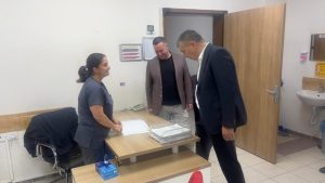 Ziyarette Hastane başhekimi Dr. Hüseyin Koçak’ta eşlik etti.Sağlık personeline özverili çalışmalarından dolayı teşekkür eden Tartar, “Acil servislerimizde görev yapan tüm personelimiz, vatandaşlarımıza gece gündüz demeden büyük bir fedakârlıkla hizmet veriyor. Biz de onların sahadaki gayretlerini yerinde görmek, ihtiyaçlarını dinlemek için sık sık ziyaretlerde bulunuyoruz.” ifadelerini kullandı.