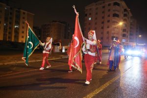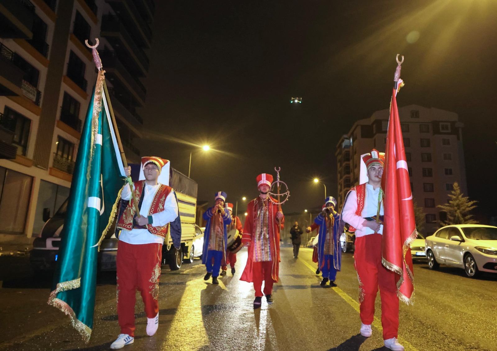 Belediye Başkanı Rasim Arı’nın da eşlik ettiği mehteran takımını selamlayan mahalle sakinlerinden bir kısmı evlerinin balkonlarından o anları cep telefonu kamerası ile görüntülerken, kimisi de Türk bayrağı sallayarak marşlara eşlik etti.