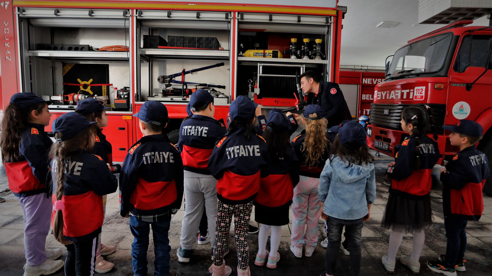 Bu çerçevede okullarda öğrencilerin katılımı ile gerçekleştirdikleri tatbikatların yanı sıra öğretmenleri gözetiminde öğrencileri Nevşehir Belediyesi İtfaiye Müdürlüğü binasında konuk eden ve öğrencilerle yakından ilgilenen itfaiye personeli, itfaiyenin nasıl çalıştığını ve toplumsal olaylara nasıl müdahale ettiğini çocuklara anlatıyor.
