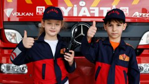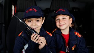 İtfaiyeci ağabeyleriyle tanışmanın mutluluğunu yaşayan ve itfaiyenin önemini ve görevlerini itfaiye personelinden dinleyen minikler, ziyaretlerde eğlenceli bir gün geçiriyor. İtfaiye üniforması giyerek renkli görüntüler de oluşturan minik öğrenciler, doğal afetler ve yangınlarda itfaiye personellerinin kullandıkları araç ve gereçleri de tanıyarak merak ettikleri soruları itfaiye personellerine soruyor.