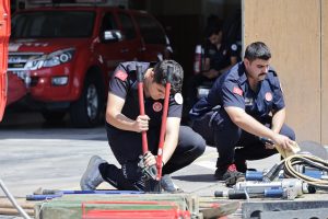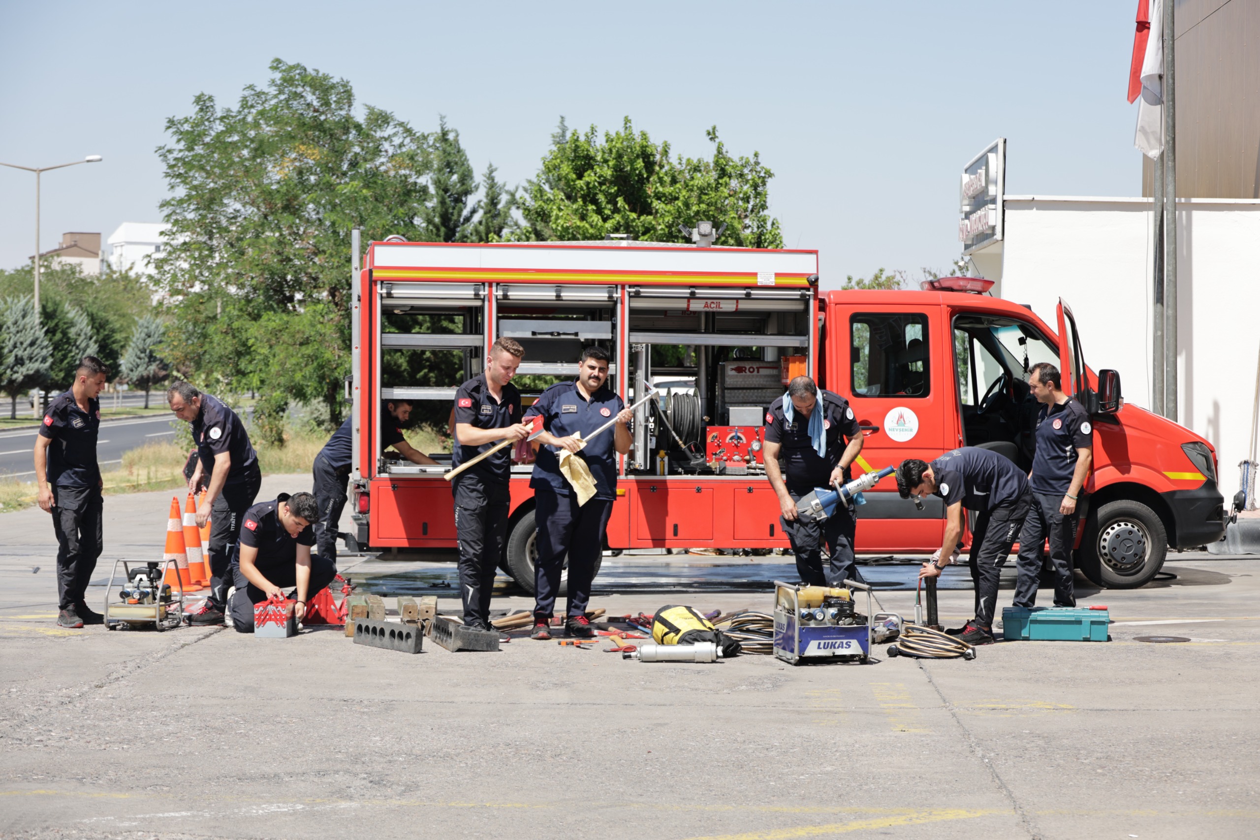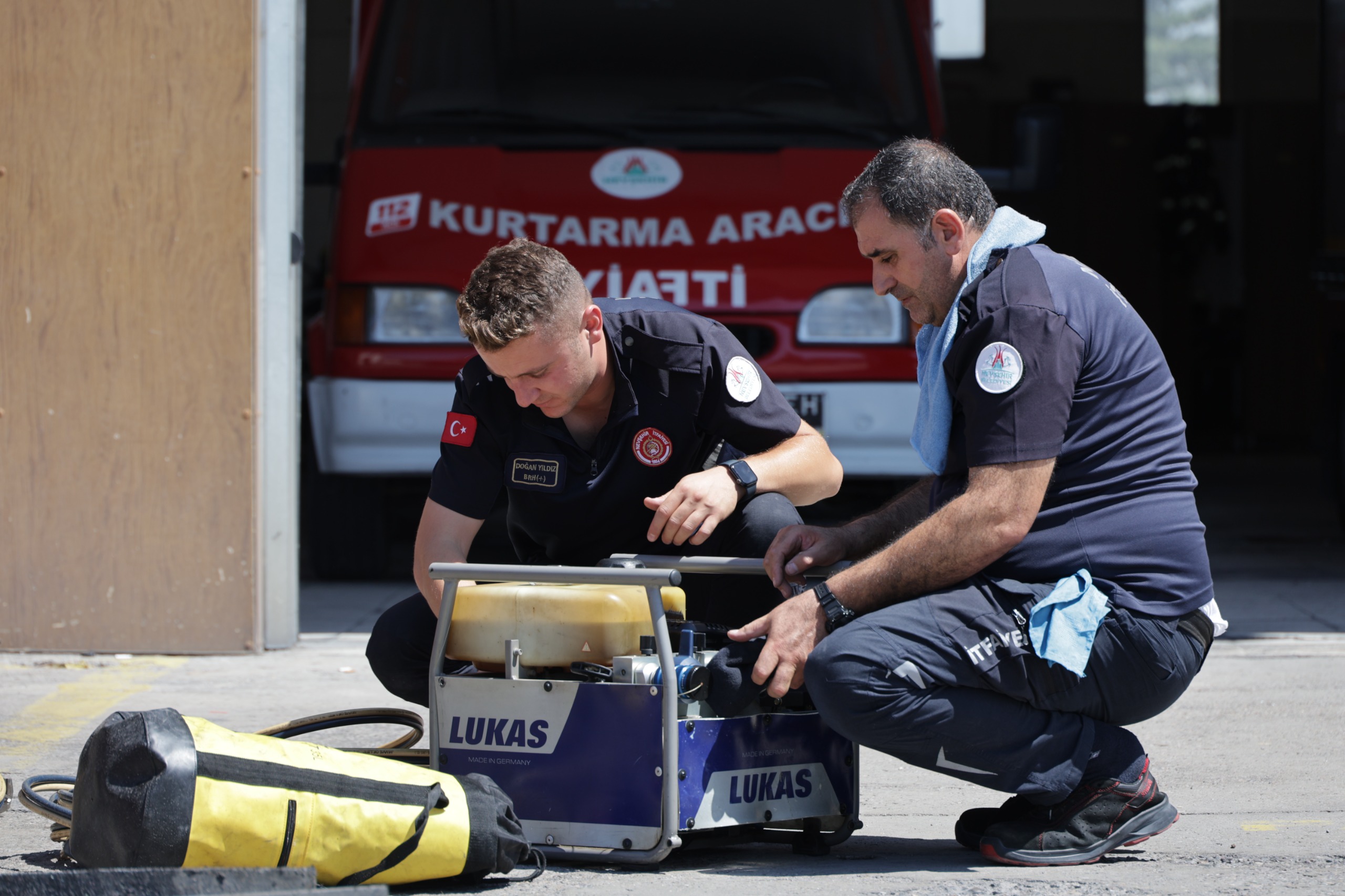 Yangın, trafik kazası, doğal afet gibi durumlara karşı tüm hazırlıklarını sürdüren itfaiye personeli, araç ve kurtarma ekipmanlarının bakımını düzenli şekilde yaparak olası acil durumlara karşı her an hazır bekliyor.