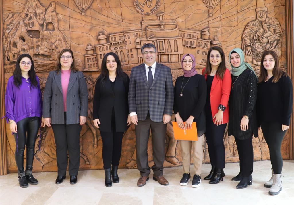 KADEM Nevşehir İl Temsilcisi Çiğdem Sofularlı, Nevşehir Genç KADEM Sorumlusu Efza Nur Türkdönmez, derneğin Yürütme Kurulu üyeleri; Özgül Yıldırım, Zehra Yaman, Meltem Erdoğan ve Sevda Tunçdemir ile birlikte Rektör Prof. Dr. Semih Aktekin’i makamında ziyaret etti. Nevşehir KADEM yöneticileri; kadınların ekonomik, sosyal ve siyasal gelişimlerine katkı sağlamak adına yürüttükleri projeler ve etkinlikler hakkında Rektör Aktekin’e bilgi verdi.