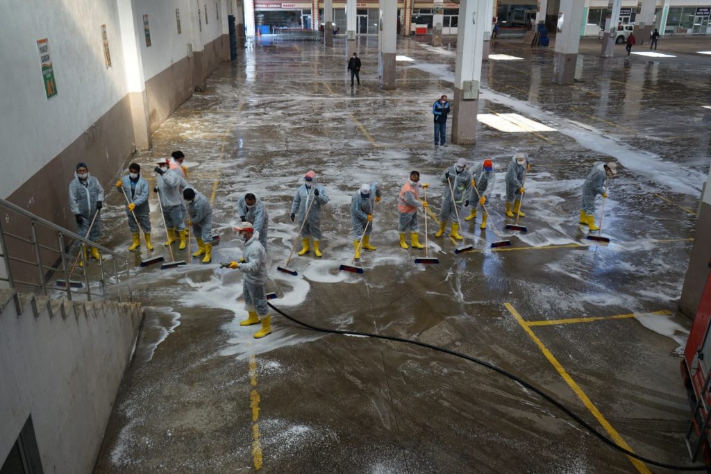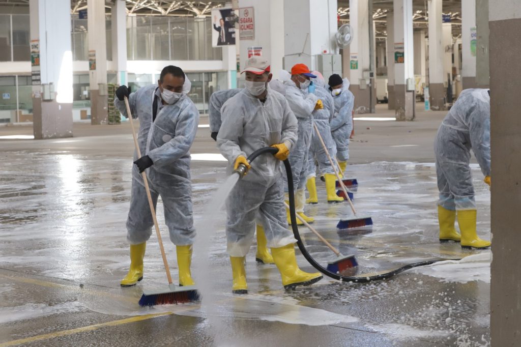 Bu kapsamda Nevşehir Belediyesi Temizlik İşleri Müdürlüğü bünyesinde oluşturulan dezenfekte ekibi, Pazar ve pazartesi günleri kurulacak olan pazar öncesinde İbrahimpaşa Mahallesinde bulunan kapalı pazar yeri içerisinde yoğun bir çalışma gerçekleştirdi.