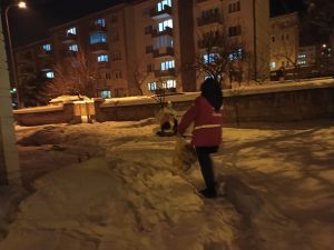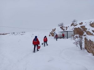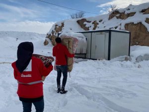 “Gıda Kolisi, Kavurma, konserve, kuşbaşı ve kıyma olarak vatandaşlarımıza getiriyoruz. Yanında ekmek de dağıtıyoruz. Uğradığımız evlerde ihtiyaca göre dağıtım yapıyoruz. Vatandaşlarımızın neye ihtiyacı varsa karşılamaya çalışıyoruz. Bir günde yaklaşık 20 haneyi geziyoruz. Ziyaretlerimiz devam ediyor. Bunun yanı sıra kapanan yollarda duraklamak zorunda kalan vatandaşlarımıza da yardımcı oluyoruz. Teşkilatımızla büyük bir gayret içerisinde bu zorlu kış günlerini en az hasarla atlatmaya çalışıyoruz.”