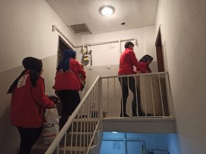 Dondurucu soğukta kapı kapı dolaşan Genç Kızılay gönüllüleri, ihtiyaç sahibi ailelere Gıda Kolisi, Kurban Payı Konserve Et, yatak, ekmek ulaştırarak yüzlerini güldürdü.