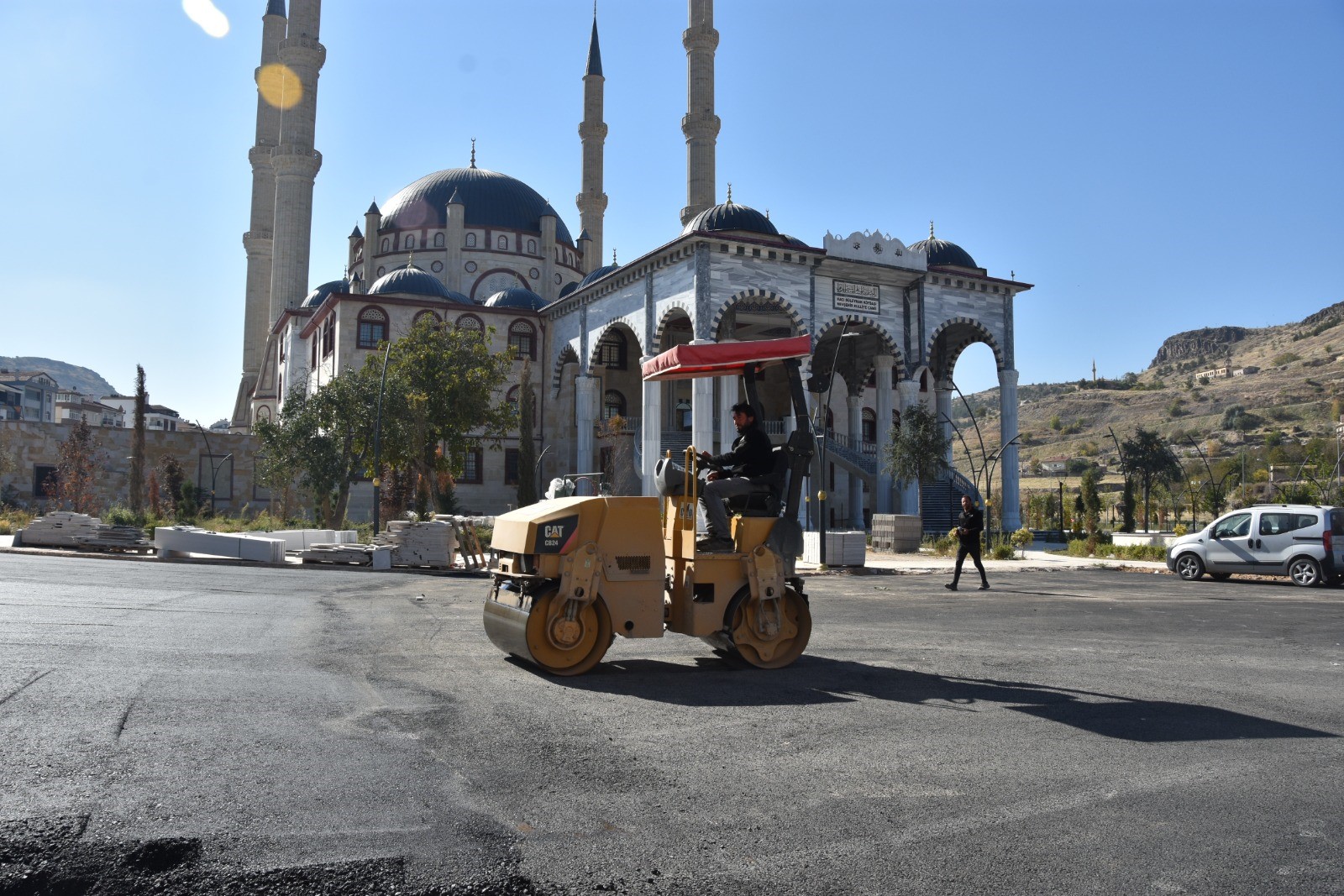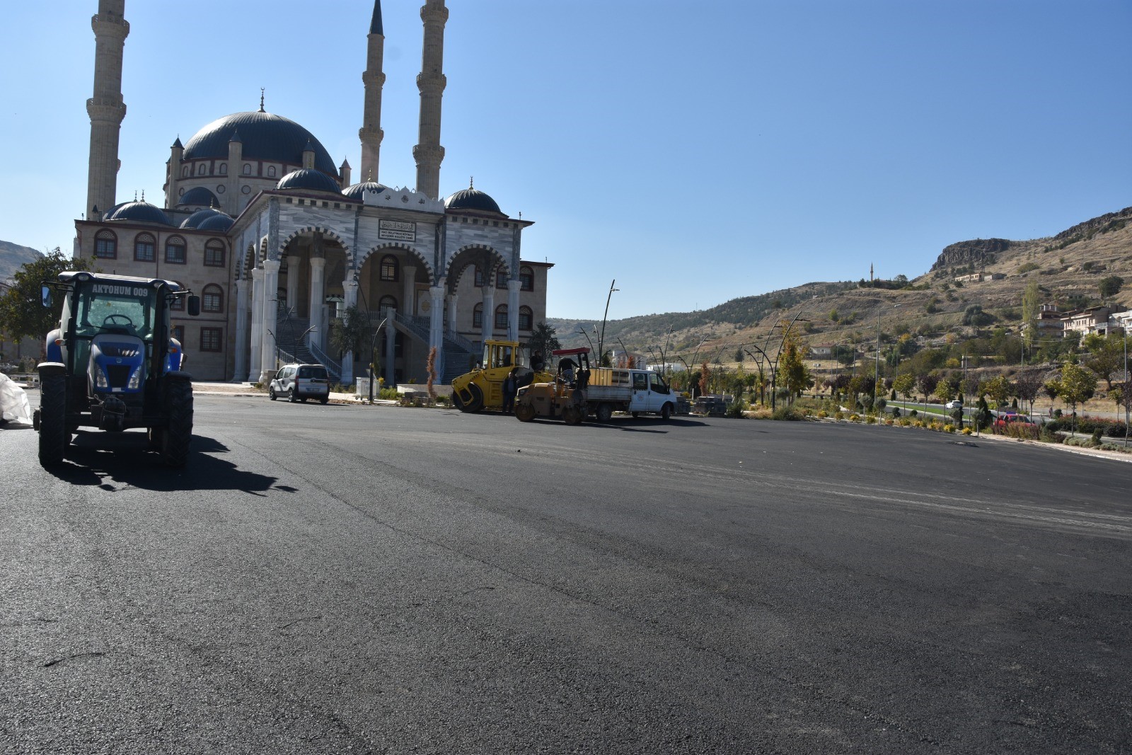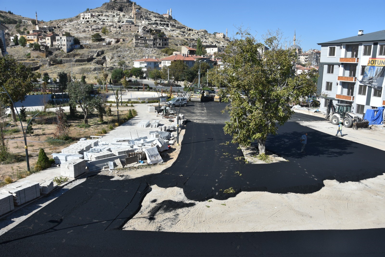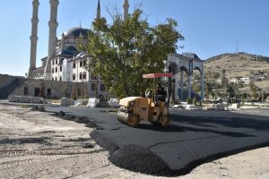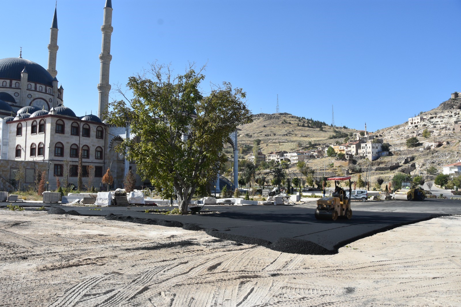 Nevşehir-Niğde karayolunun kenarında bulunan ayrılmış yolda ve külliye parkının ön cephesinde bulunan araç park alanları tamamen sıcak asfaltla kaplandı.