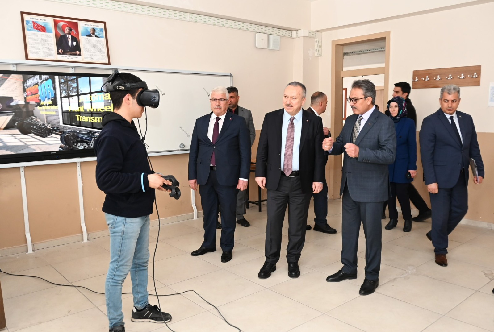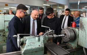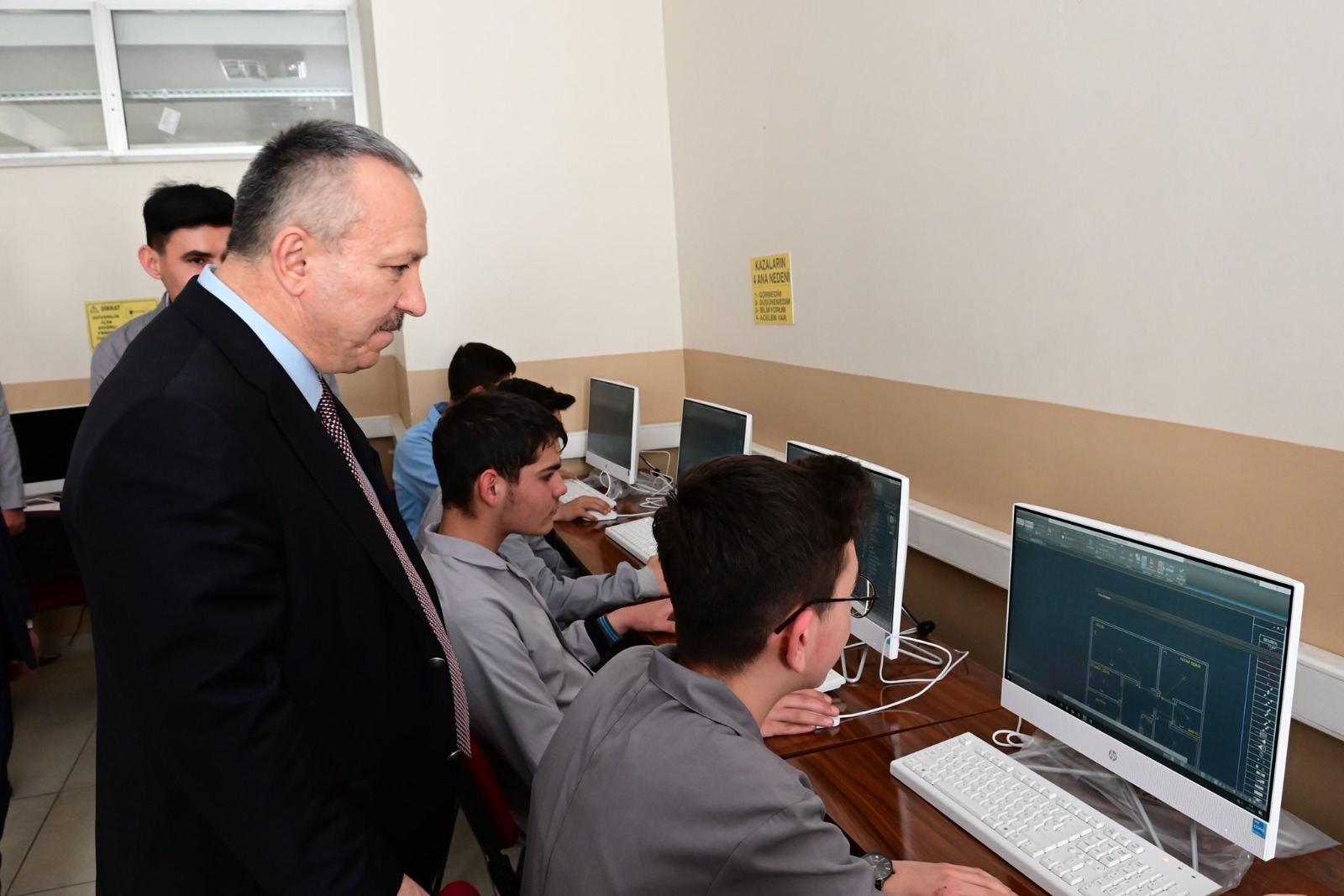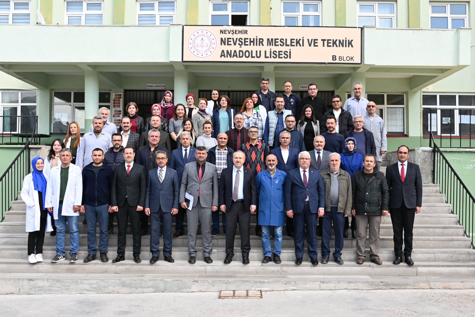 Nevşehir Valisi Ali FİDAN ve İl Milli Eğitim Müdürü Yusuf YAZICI, Nevşehir Mesleki ve Teknik Anadolu Lisesini ziyaret ederek mesleki ve teknik alanlarda eğitim yapılan atölyelerde incelemelerde bulundular. Bilişim Teknolojileri, Elektrik Elektronik Teknolojileri, Mobilya ve İç Mekan Tasarımı, Metal Teknolojisi, Makine Teknolojisi ve Motorlu Araçlar Teknolojisi alanlarında eğitim gören öğrencileri ziyaret ederek öğrencilere başarılar dileyen Vali Fidan ve İl Müdürü, öğretmenler odasında öğretmenlerle sohbet ettiler.