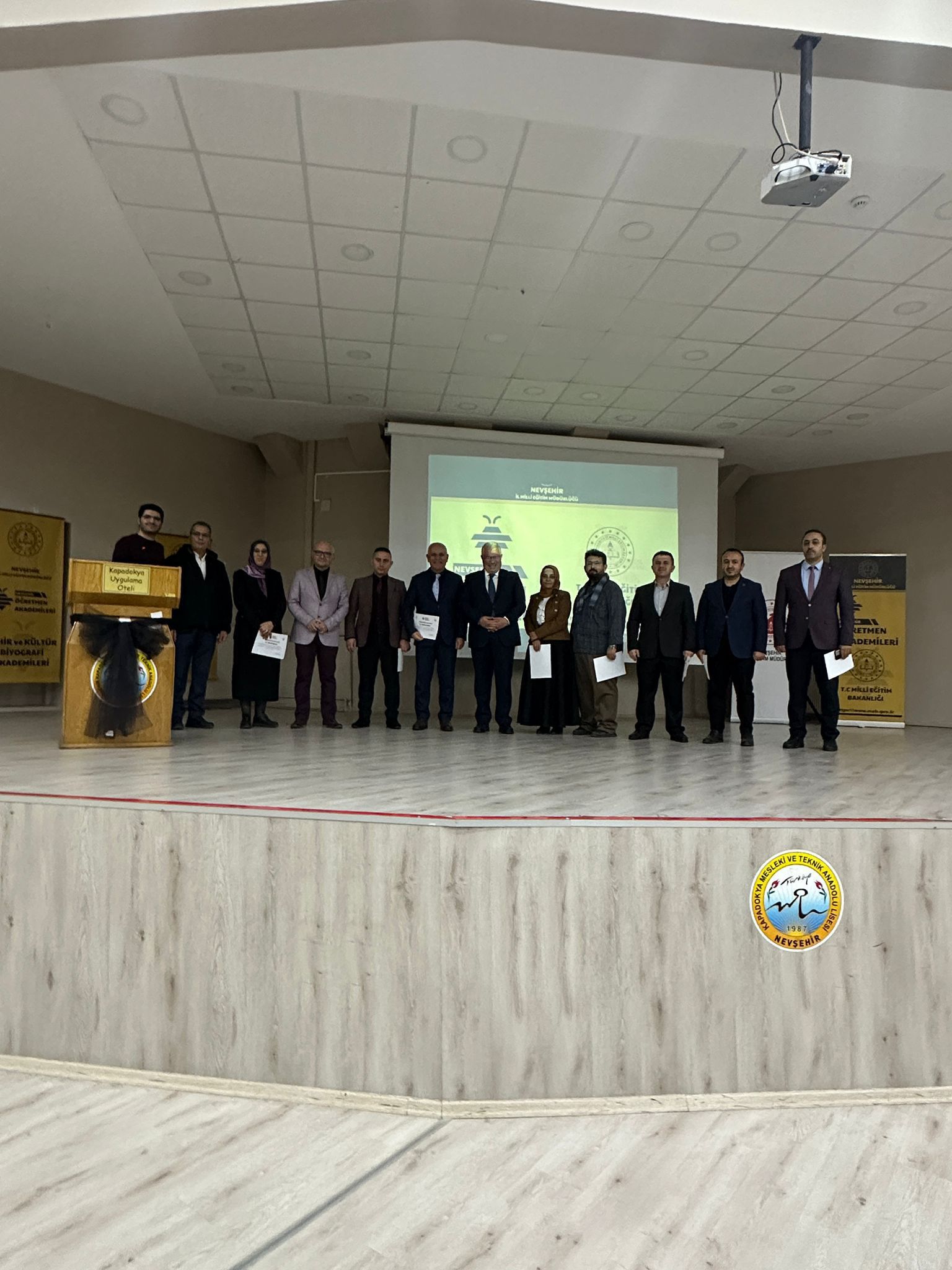 Kapadokya Turizm ve Mesleki ve Teknik Anadolu Lisesi Konferans Salonunda gerçekleştirilen programa; Nevşehir Hacı Bektaş Veli Üniversitesi Fen Edebiyat Fakültesi Öğretim Üyesi Doç. Dr. Mustafa Karataş, İl Milli Eğitim Müdürü Yusuf Yazıcı, Şube Müdürleri Feyyaz Solak, Fatih Günkan, Hilmi Önal, Süleyman Baştürk ile okul yöneticiler ve öğretmenler katıldı.