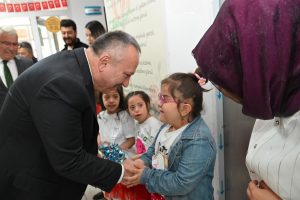 Özel gereksinimli öğrencilerle yakından ilgilenen Vali Sayın Ali FİDAN ve İl Milli Eğitim Müdürü Yusuf YAZICI, öğrencilerin mutluluğunu paylaştılar.