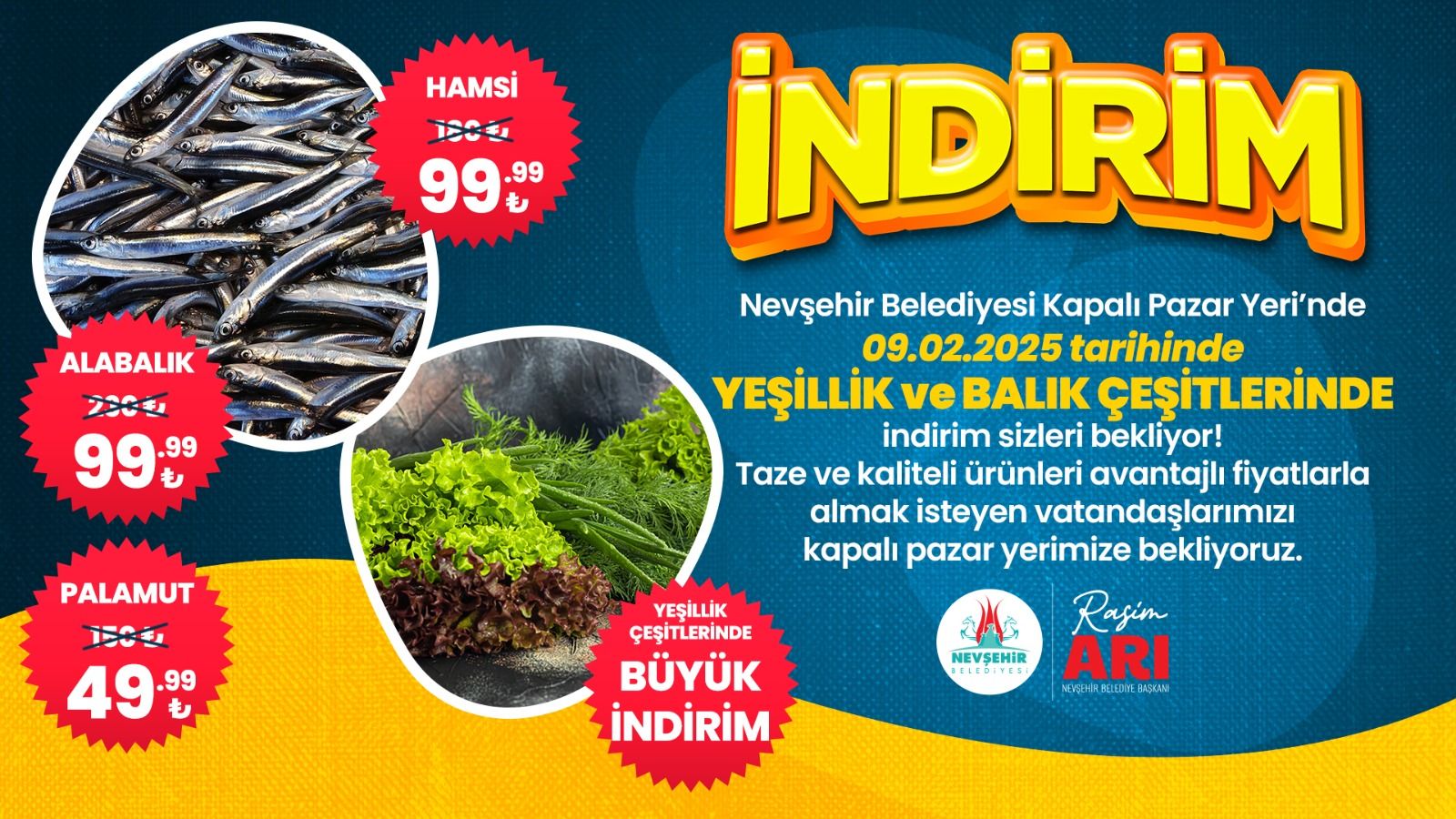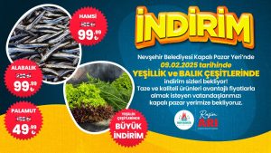Nevşehir Pazaryeri Esnaflarından her hafta yapılacak olan indirimlerle alakalı edinilen bilgilere göre “Bu hafta 9-10 Şubat 2025 tarihlerinde Yeşillik ve Balık çeşitlerinde büyük İNDİRİMLER sizleri bekliyor. Taze ve kaliteli ürünleri avantajlı fiyatlarla almak isteyen bütün Nevşehirli Vatandaşlarımızı Kapalı Pazaryerimize bekliyoruz. Bu indirimler her hafta sonu çeşitli ürünlerde yapılmaya devam edecek. Nevşehir Belediye Başkanlığı tarafından başlatılan pazaryerine ücretsiz servis hizmetinden dolayı da Belediye Başkanımız Rasim Arı’ya çok teşekkür ediyoruz. Bu vesileyle de bütün vatandaşlarımızı alışverişlerini yapmak üzere pazaryerimize bekliyoruz” açıklaması yapıldı.