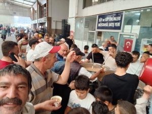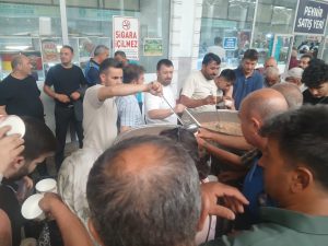 Nevşehir Pazaryerinde, merhum Sedat İnan ve merhum Hüseyin Avcı adına vatandaşlara aşure ikramında bulunuldu.