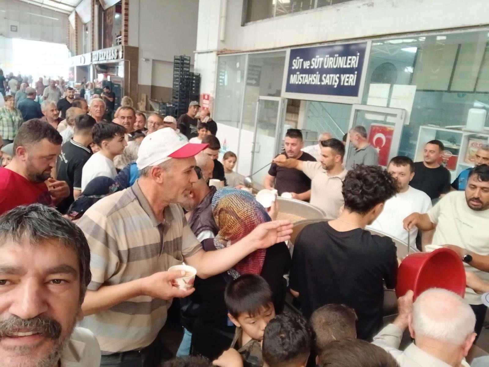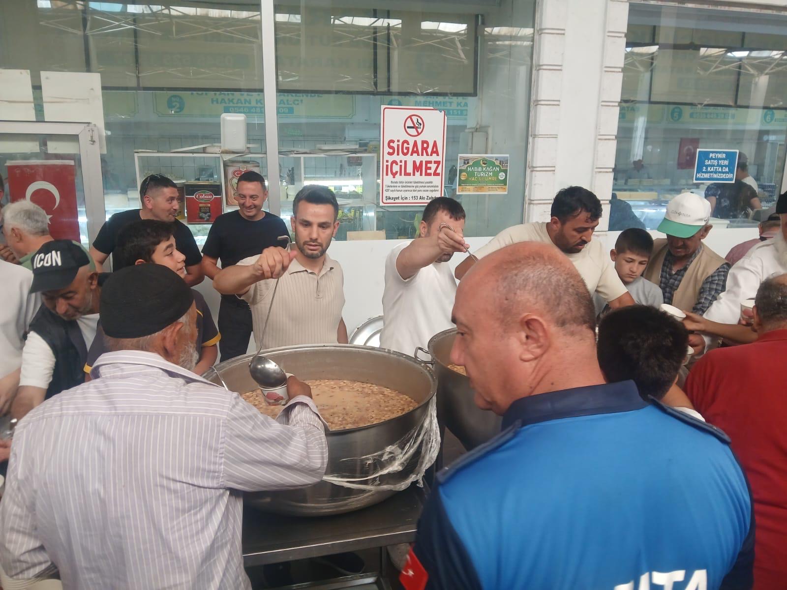 Düzenlenen hayır etkinliğinde kazanlarca aşure, pazaryerine gelen vatandaşlara ikram edildi. Etkinliğe katılanlar, bu anlamlı hayır için emeği geçenlere teşekkür etti.