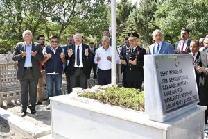 Vali Fidan ve Başkan Arı, beraberindeki protokol üyeleriyle birlikte 15 Temmuz gecesi vatanı ve demokrasiyi savunurken şehit düşen kahramanların kabirlerine karanfil bırakarak dua etti.