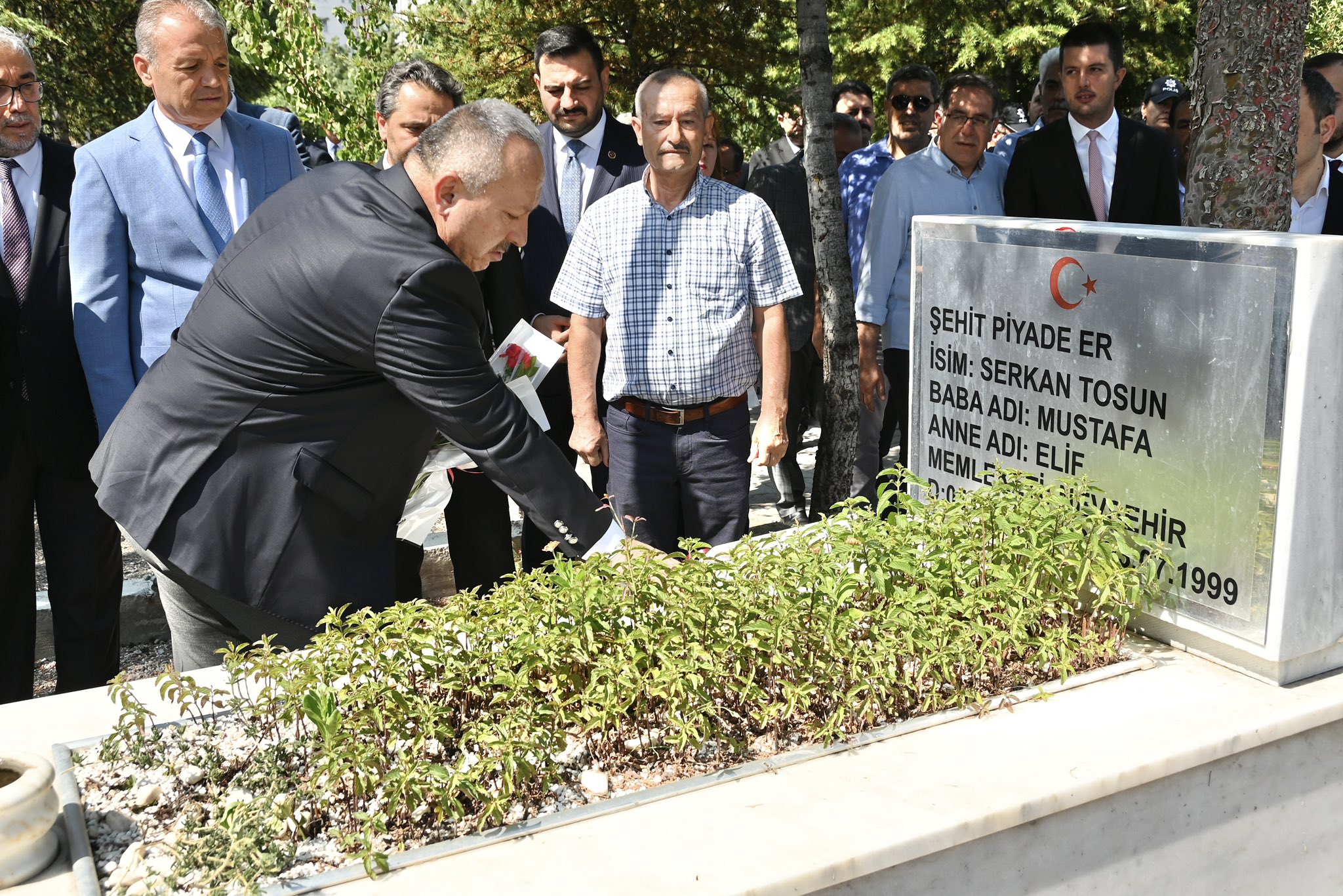 Nevşehir Valisi Ali Fidan ve Nevşehir Belediye Başkanı Rasim Arı, 15 Temmuz Demokrasi ve Milli Birlik Günü’nün 9. yılı dolayısıyla düzenlenen anma programı kapsamında Taşlıbel Mezarlığı’nı ziyaret etti.