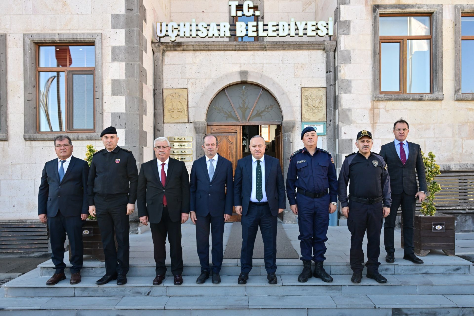 Nevşehir Valisi Ali Fidan, Nevşehir İl Emniyet Müdürü Serkan Karaman, Nevşehir İl Jandarma Alay Komutanı J.Alb. Mehmet Çelik ve Nevşehir İl Millî Eğitim Müdürü Yusuf Yazıcı, Uçhisar Belediye Başkanı Abdullah Çamcı’yı makamında ziyaret etti. Gerçekleşen ziyarette, Uçhisar’da yürütülen belediye hizmetleri, bölgenin ihtiyaçları ve devam eden projeler hakkında değerlendirmelerde bulunuldu. Başkan Abdullah Çamcı, kurum temsilcilerine yapılan çalışmalar ve planlanan projeler hakkında bilgi verdi. Vali Ali Fidan ve beraberindeki heyet, Uçhisar’ın Kapadokya bölgesindeki önemine dikkat çekerek belediye tarafından yürütülen çalışmalara destek verdiklerini ifade etti. Ziyaret, karşılıklı iyi niyet temennilerinin iletilmesi ve hatıra fotoğrafı çekilmesiyle sona erdi.