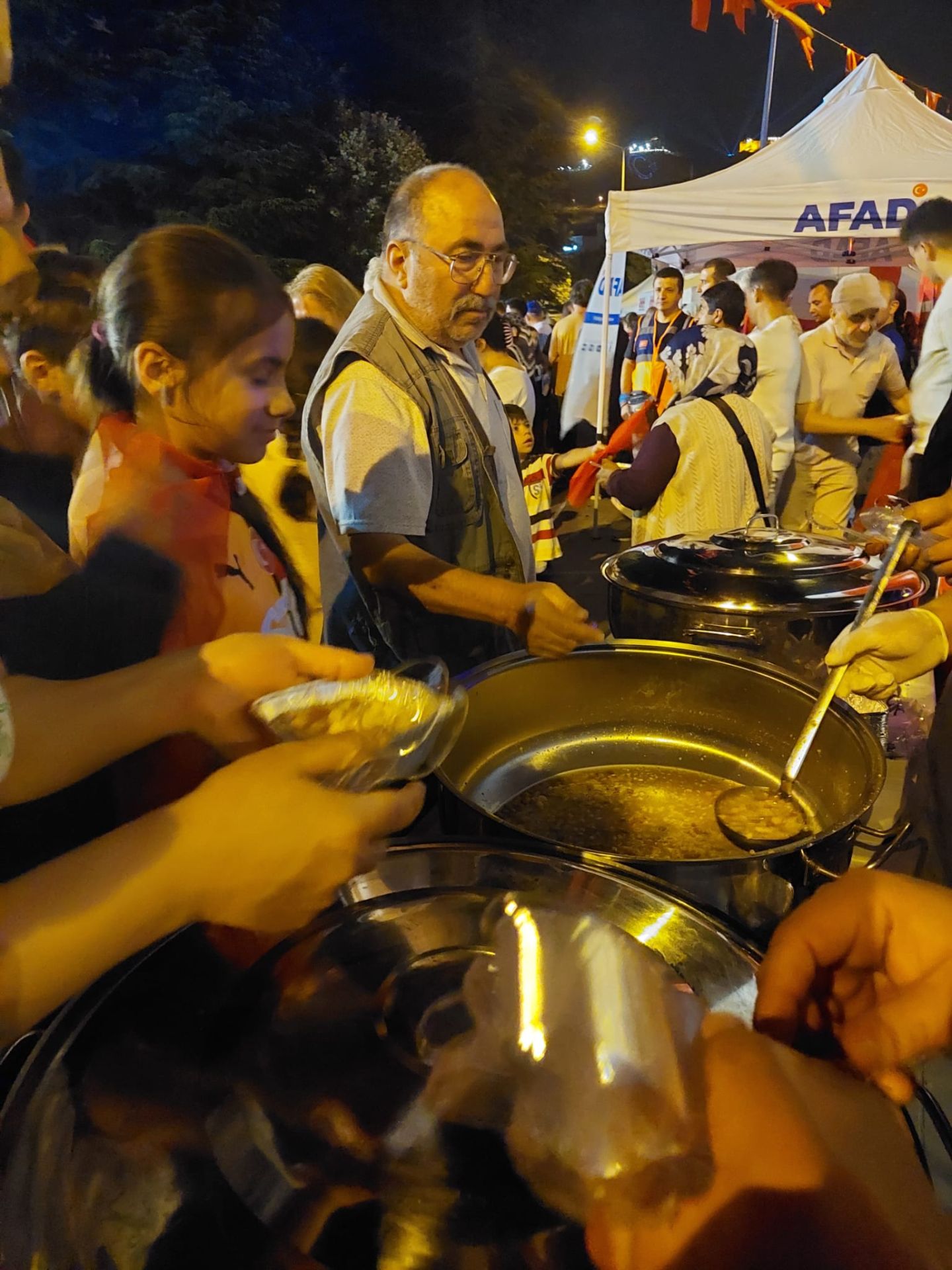 Nevşehir Hükümet konağı önünde düzenlenen 15 Temmuz Demokrasi Ve Milli Birlik Günü anma programına katılan vatandaşlara bin kişilik aşure dağıttı.