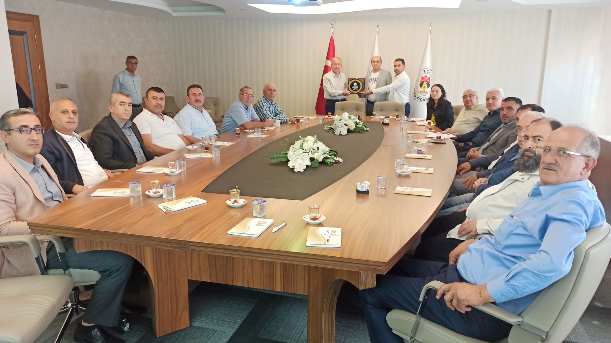 Ticaret Borsası toplantı salonunda düzenlen ve Meclis, Disiplin Kurulu Üyelerinin de hazır bulunduğu devir teslim töreninde NTB Yönetim Kurulu Başkanı İbrahim Salaş, Meclis Başkanı Mehmet Havalı ile birlikte emekliye ayrılan Uğur Aydoğan’a plaket takdim etti.