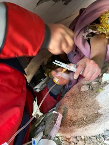 6 Şubat Depremlerinde Nevşehir Devlet Hastanesi’nde Anestezi Teknikeri olarak görev yapan Muhammed Sümercan gönüllü olarak görev aldı. Depremin 2. Günü akşam saatlerinde yıkımın en çok olduğu Kahramanmaraş Oniki Şubat mahallesi Piazza karşısında JAK tarafından kurtarılmaya çalışılan depremzedeye UMKE olarak ulaştığım depremzedenin enkazda bulunduğu pozisyon, alanın çok dar olması, havanın soğuk sıvı kaybının da çok olması sebebi ile defalarca denememe rağmen damar yolunu açamadım. Yaşama tutunması için o damar yolunu açmam şarttı. Pes etmek aklıma gelmedi. Hem o kişiye hem de kendime moral olması amacı ile sol elini tuttuğumda, baş parmağının üst kısmında damar hissettim. Nefesimi tutarak müdahale ettim ve damar yolunu açtım. Damar yolunun küçük olması ve parmağın hareket etmesinden dolayı enkazdan bulduğum plastik parçası ile sabitleyerek damar yolunun sağlıklı çalışmasını sağlayarak sıvı gönderdim. Hayatım boyunca unutmayacağım ve benim için en değerli damar yolu oldu.