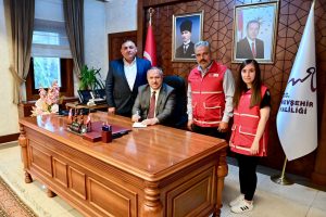 Vali Fidan’a ziyarette, Türk Kızılay İl Merkezi Başkanı Ercan Civelek’e şube yönetim kurulu üyesi Yusuf Satılmış eşlik etti.