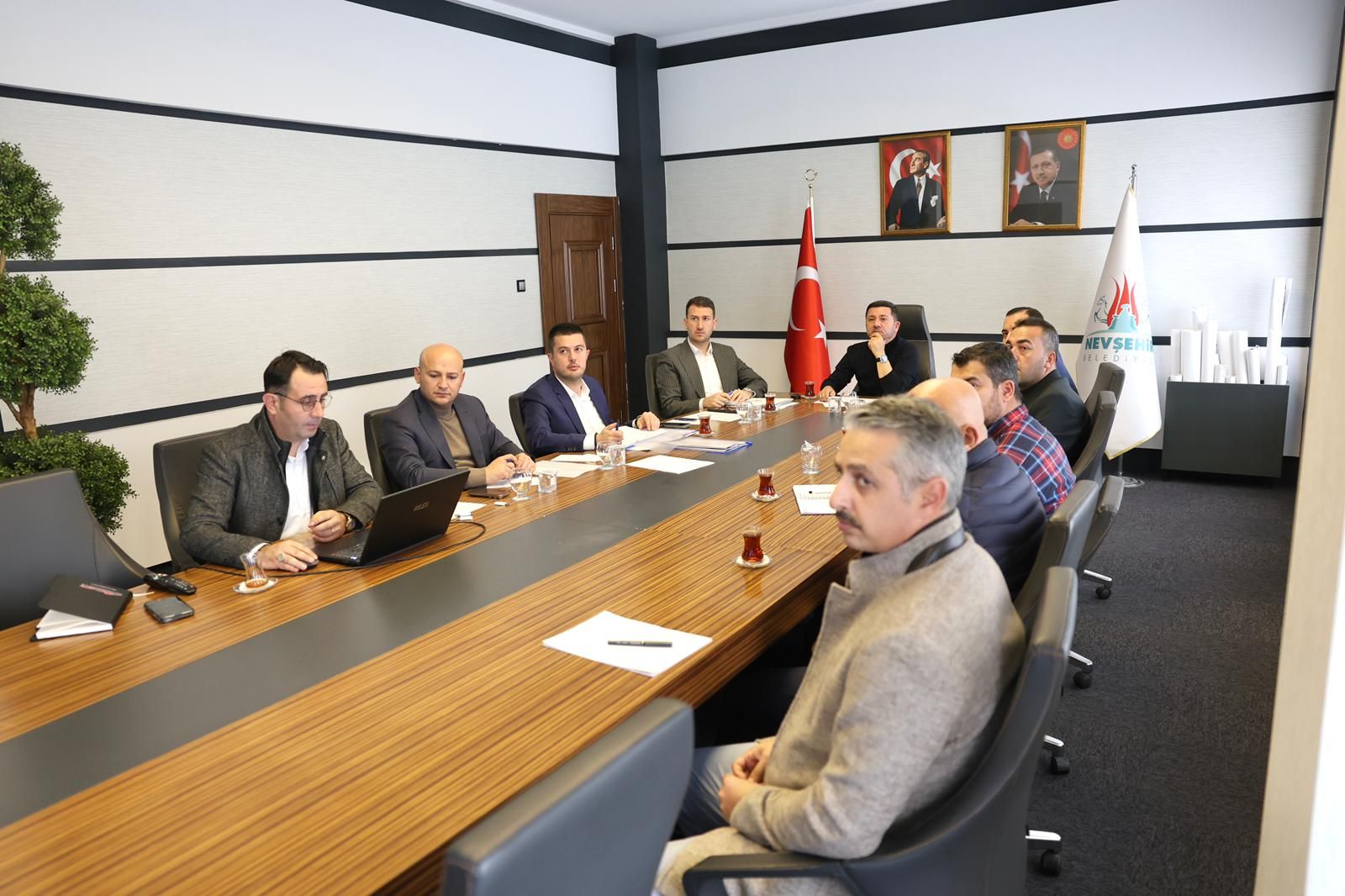 Belediye Başkanı Rasim Arı başkanlığında düzenlenen toplantıda kentte yapılacak alt ve üst yapı çalışmalarının önemine dikkat çekildi. Nevşehir Belediye Başkanı Rasim Arı, belediye başkan yardımcıları ve daire müdürleri ile belediye hizmet binası toplantı salonunda bir araya geldi. 2025 yılında yapılan yatırımların değerlendirildiği toplantıda, 2026 yılının yol haritası masaya yatırıldı.