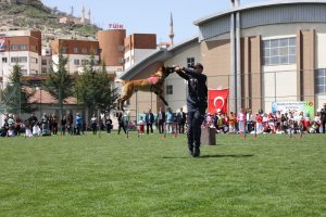 Öğrenciler tarafından ritim, dans ve halk oyunu gösterisi sunuldu, Jandarma At ve Köpek Eğitim Merkezi (JAKEM) Komutanlığı’nda eğitilen köpek ve eğiticisinin gösterisi izlendi.