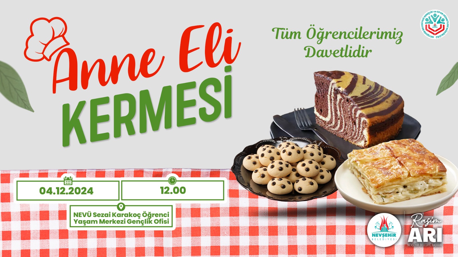 Nevşehir’de ihtiyaç sahibi üniversite öğrencilerine destek olmak amacıyla 04 Aralık 2024 Çarşamba günü gelirleri öğrencilere verilecek “Anne Eli Kermesi” yapılacak.