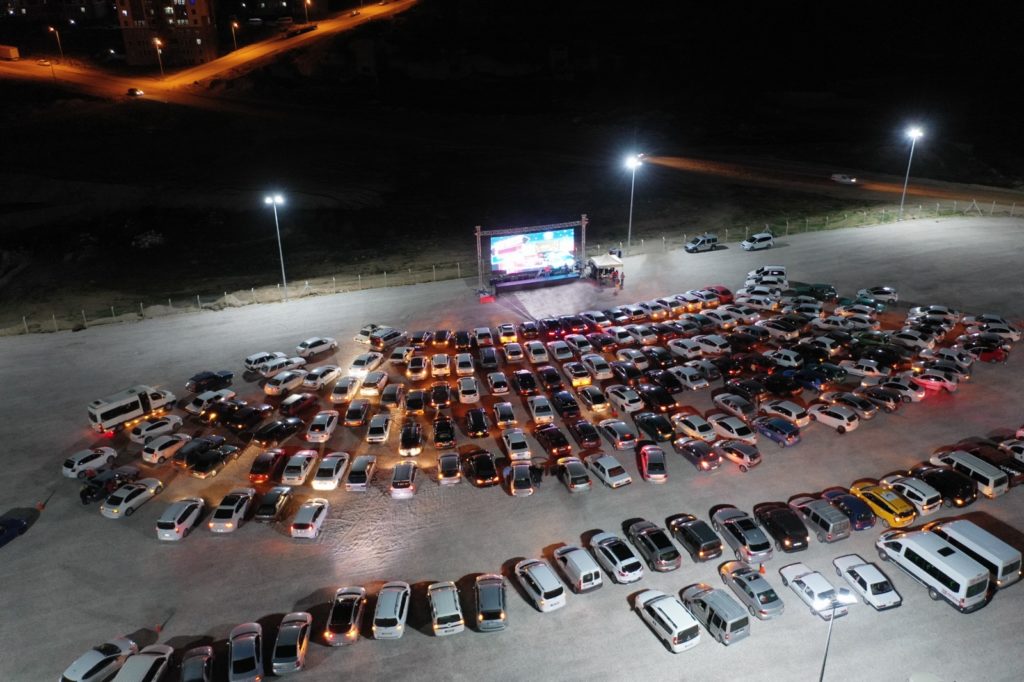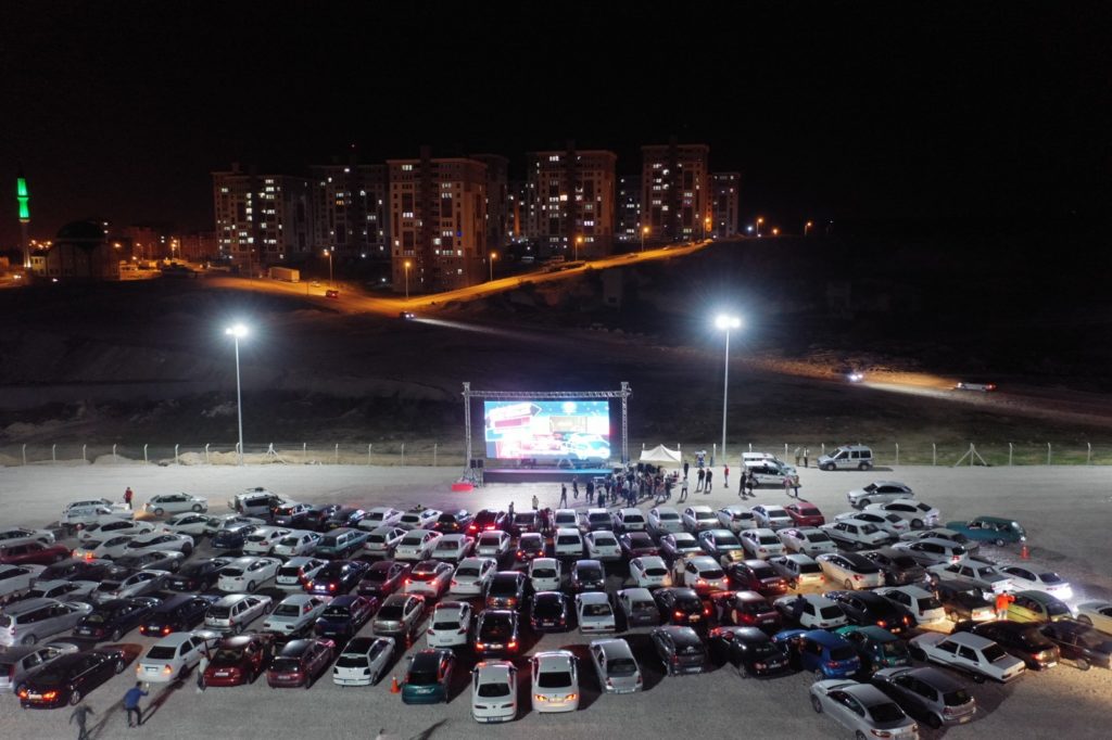 Nevşehir Belediyesi tarafından yapımı tamamlanan ancak korona virüs nedeniyle hizmete açılamayan tır garajında düzenlenen arabalı sinema günlerine yüzlerce araç katıldı.