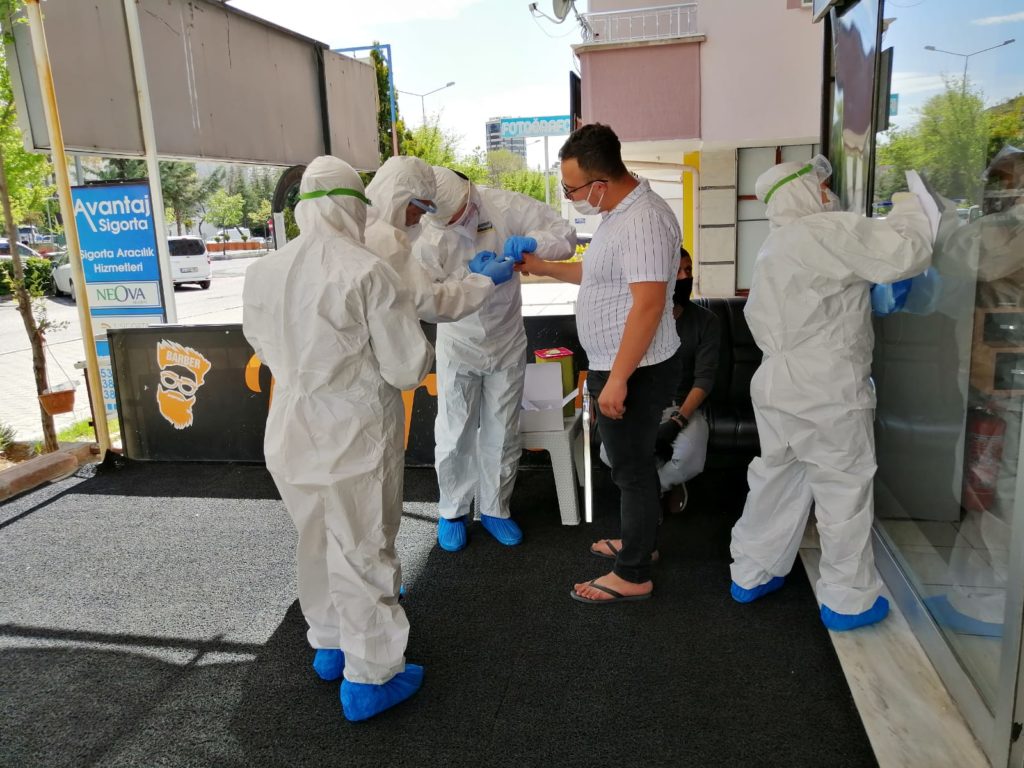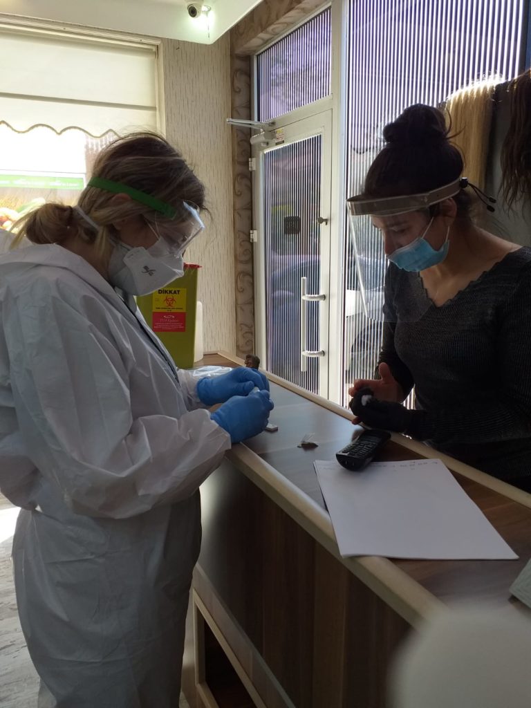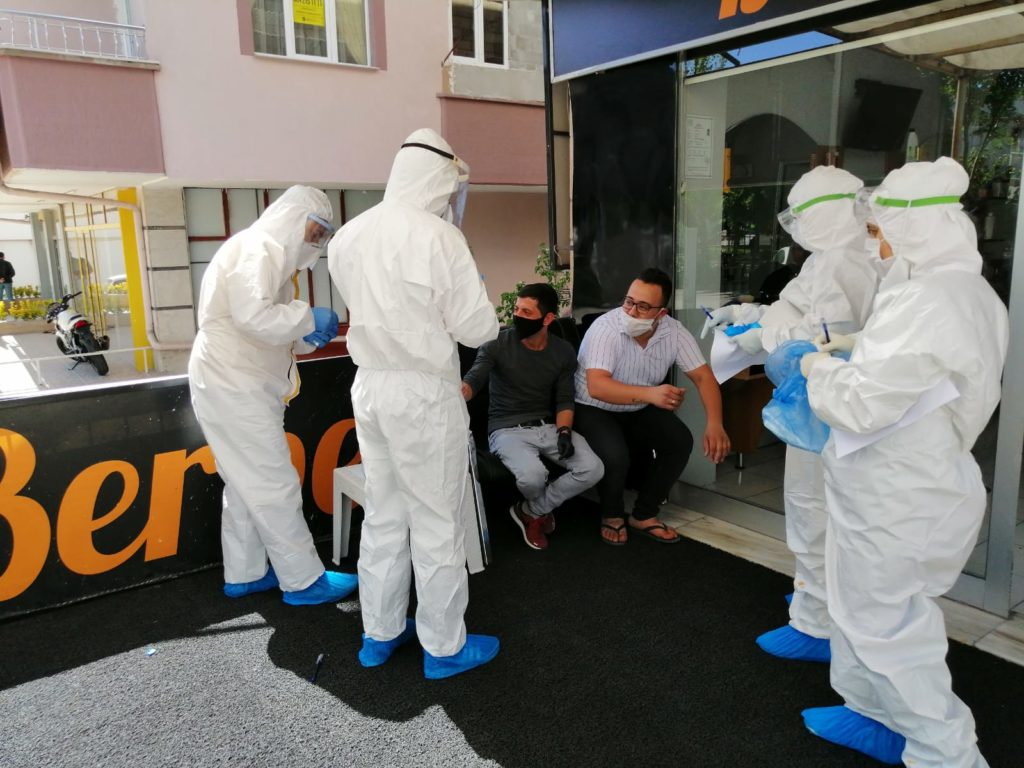 Akabinde çalışanlara hızlı tanı testi ile virüse karşı bağışıklıkları kontrol edildi.