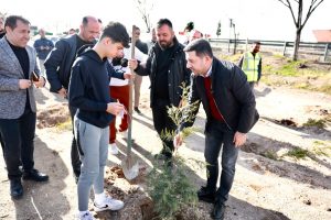 Aksaray Çevre Yolu istikametinde Sümer Mahallesi Ahmet Kemal Dedeoğlu Sokak’ta bulunan 23 Nisan Ortaokulu yanındaki alanda Belediye Başkanı Rasim Arı ve vatandaşlarımızın katılımı ile binlerce fidan toprakla buluştu.