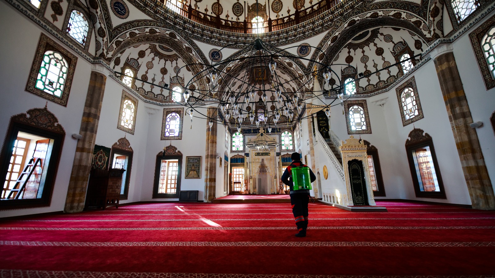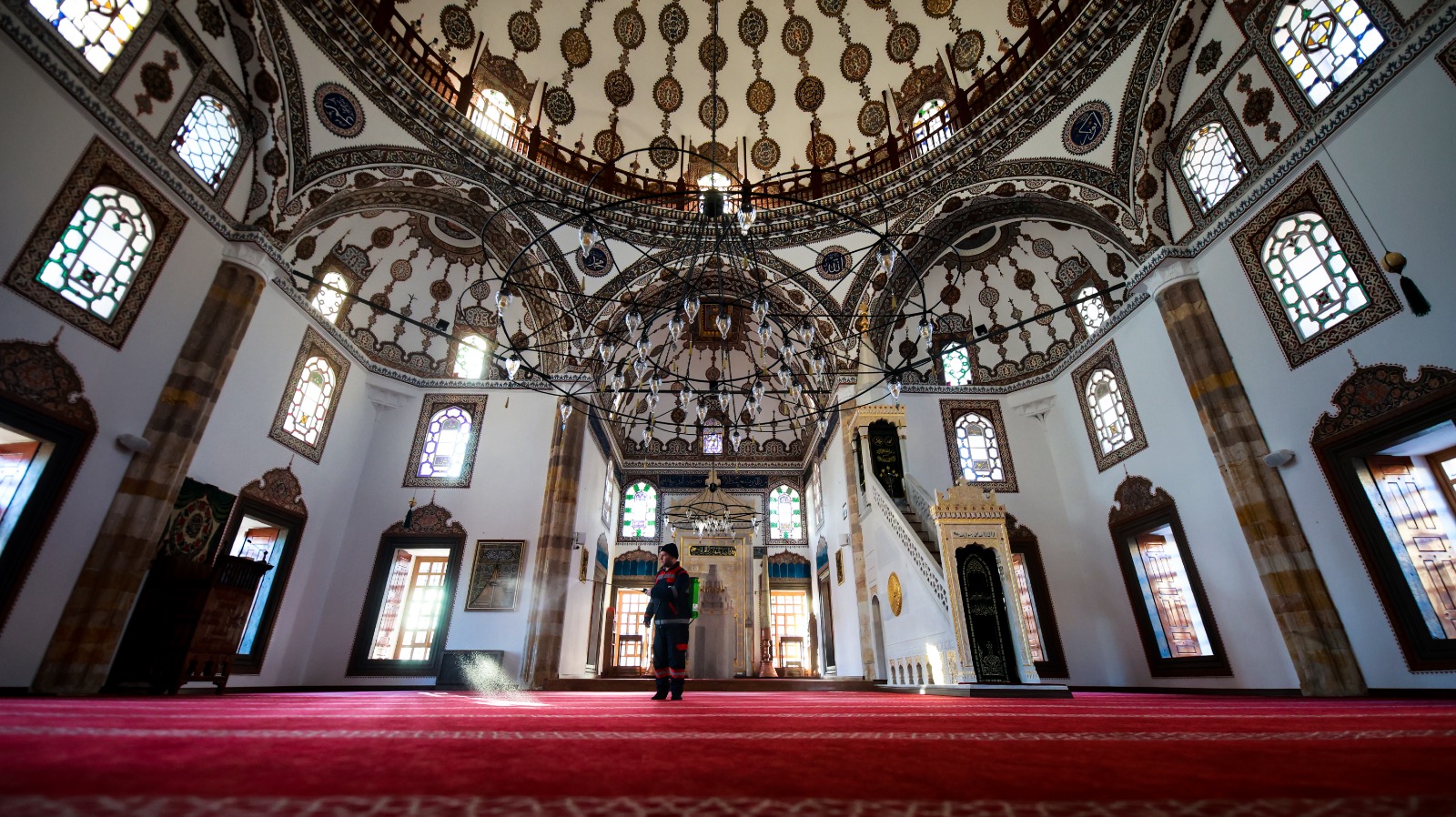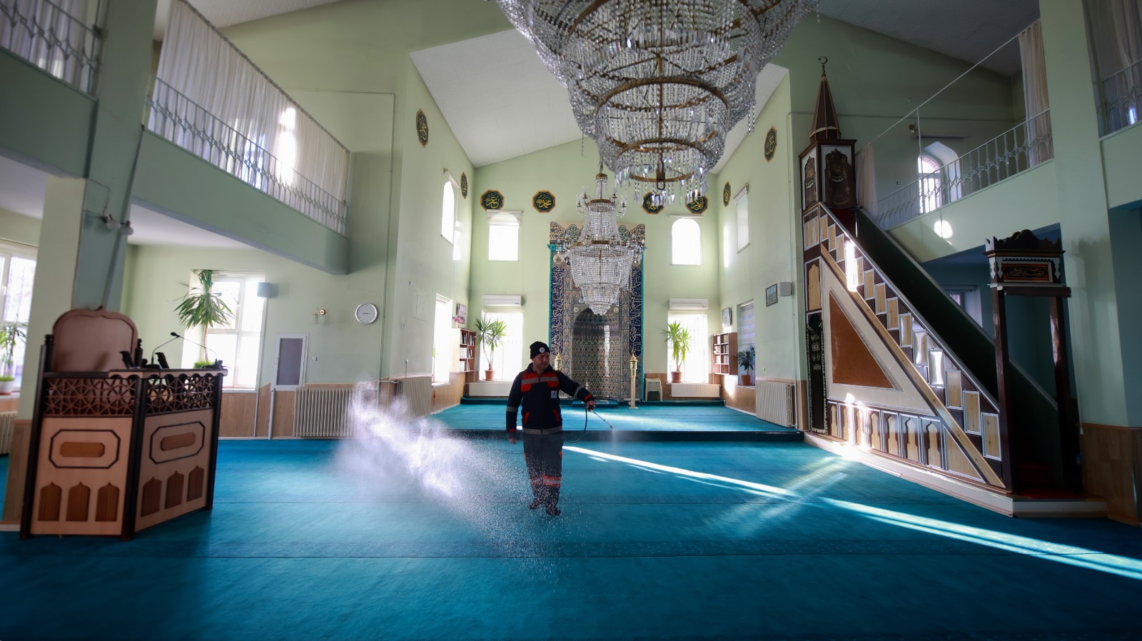 Nevşehir Belediyesi Temizlik İşleri Müdürlüğüne bağlı ekipler, tulumbalar yardımıyla tüm camilerin iç mekânlarına gülsuyu sıktı.