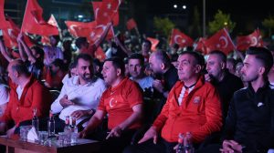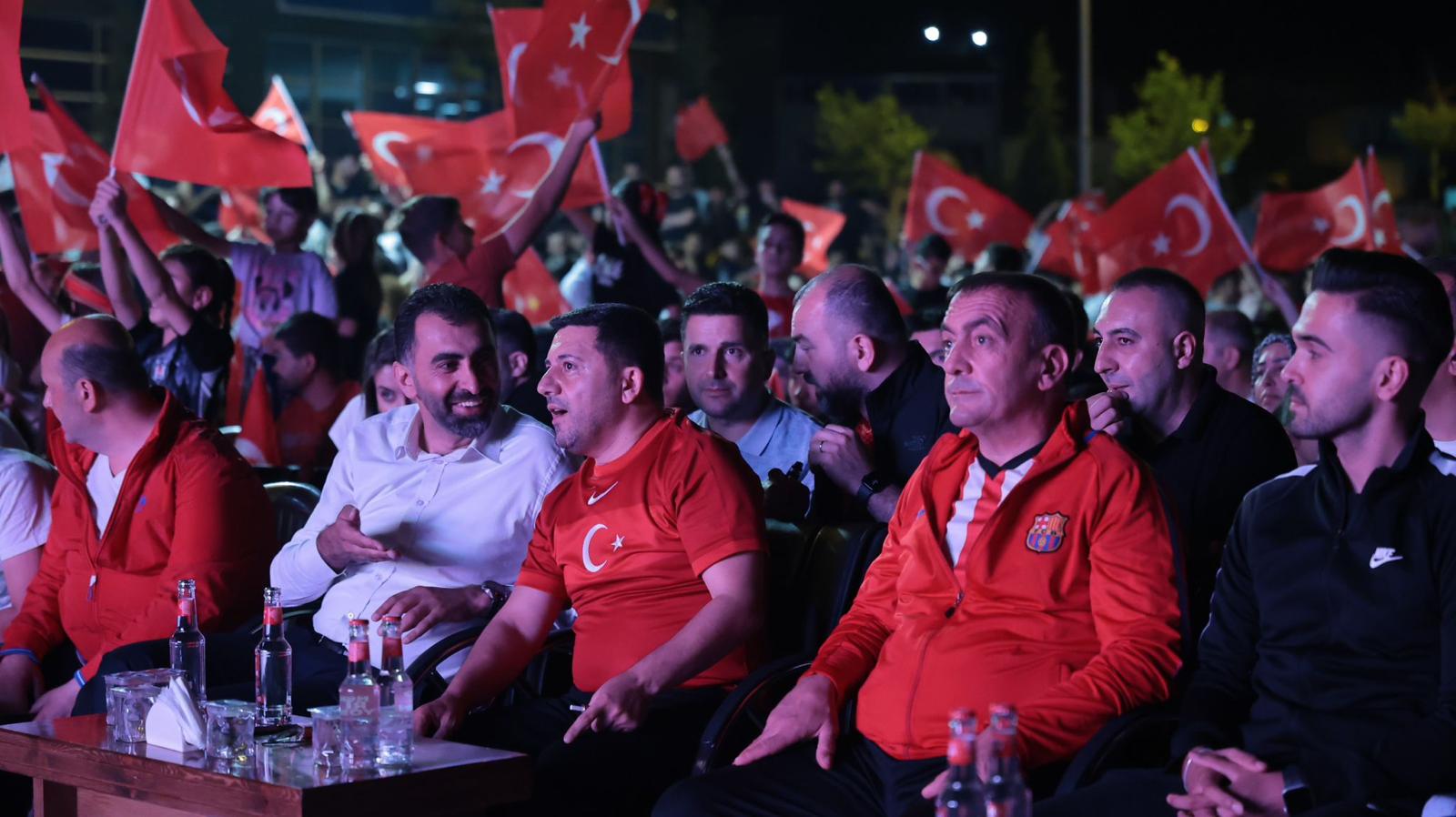 Maçı dev ekranda büyük bir heyecanla izleyen kalabalık grup Ay-yıldızlı futbolcuların turnuvanın son 16 turunda Avusturya’yı 2-1 yenerek çeyrek finale kalmasının ardından ise büyük sevinç yaşadı. Sevinç gösterileri yapan vatandaşlar, tezahüratlarla milli takıma destek verdi.