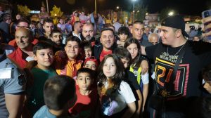 Kapadokya Kültür ve Sanat Merkezi bahçesini dolduran yüzlerce kişi ile birlikte maçı izlemek için alana gelen Belediye Başkanı Rasim Arı, gençler tarafından burada sevgi gösterileriyle karşılandı. Yaktıkları meşalelerle Rasim Arı’yı karşılayan gençler, Arı ile birlikte fotoğraf çektirdi.