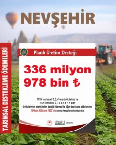 • Nevşehir’de Çiftçilere 1,18 Milyar TL’lik Destek Ödemesi