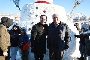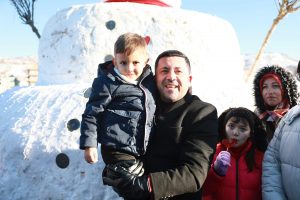 Nevşehir Kalesi, Kayaşehir ve Kahveci Dağı manzarasının altında sıcak salep ve müzik eşliğinde düzenlenen etkinlikte çocuklar ve aileleri kardan adam ile bol bol hatıra fotoğrafı çektirdi.