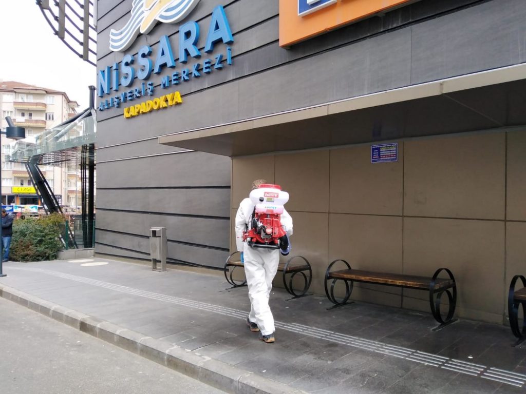 Nevşehir Belediyesi, koronavirüs (Covid-19) tedbirleri kapsamında virüsün yayılmasını önlemek amacıyla her gün şehrin birçok farklı noktasında dezenfeksiyon çalışması gerçekleştiriyor.