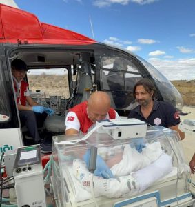 Bunun üzerine Nevşehir İl Sağlık Müdürlüğü İl Ambulans Servisi Başhekimliği harekete geçti. Hastanın son durumuna göre en uygun naklin hava yolu ile Helikopter olduğuna karar verildi.Kayseri Bölgesi’nden kalkan helikopter ambulans kısa sürede Nevşehir Devlet Hastanesi’ne ulaştı. Yoğun hazırlık ve koordinasyonun ardından bebek, uzman sağlık ekibi eşliğinde helikopter ambulansa nakledildi.