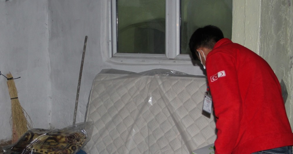 Çullar köyünde evi yanan aileye yine Kızılay yetişti