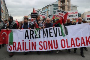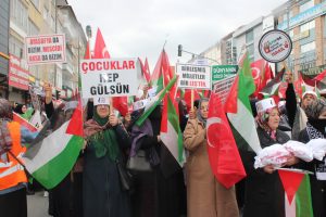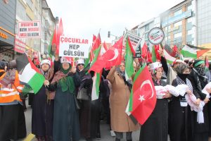 İnsan Hak ve Hürriyetleri (İHH) İnsani Yardım Vakfı’nın çağrısıyla Borsa Kavşağı’nda toplanan vatandaşlar, ellerinde Türk ve Filistin bayraklarıyla Hükümet Konağı’na kadar yürüdü. Yürüyüş boyunca “Her yer Filistin, her yer Gazze”, “Çocuklar uyurken susulur, ölürken değil” ve “Özgür Filistin için ayağa kalk” gibi sloganlar atıldı. Katılımcılar zaman zaman tekbir getirerek tepkilerini dile getirdiler.