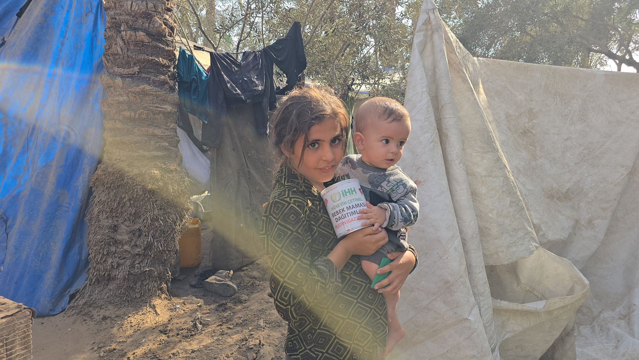 Harabeye dönen Gazze’de yıkık binalar arasında ve çadırlarda yaşam savaşı veren ailelerin kıymetli evlatları için hazırlanan paketler görevlilerce dağıtıldı.