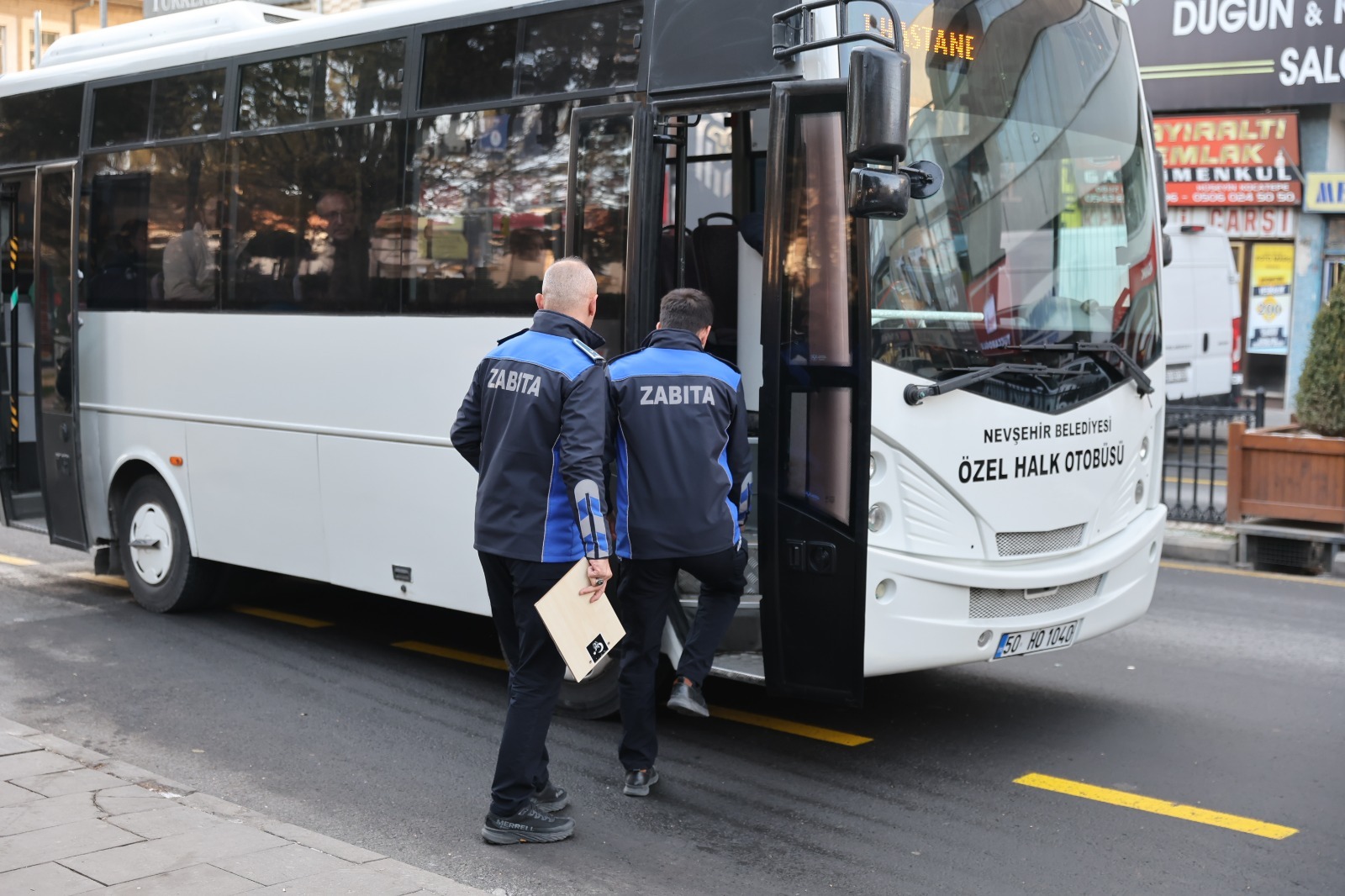 Nevşehir Belediyesi Zabıta Müdürlüğü ekipleri, özel halk otobüslerine yönelik denetim ve kontrollerini sürdürüyor.