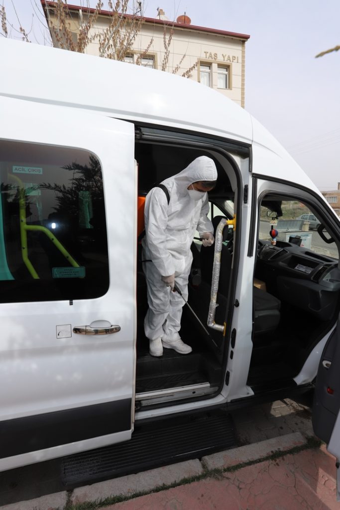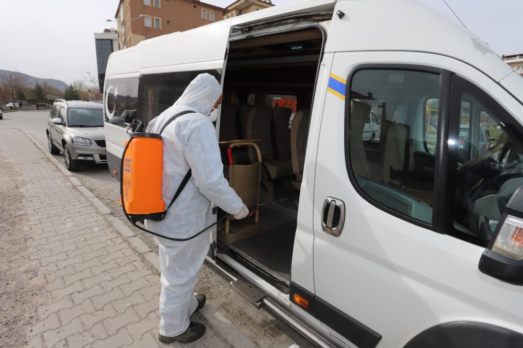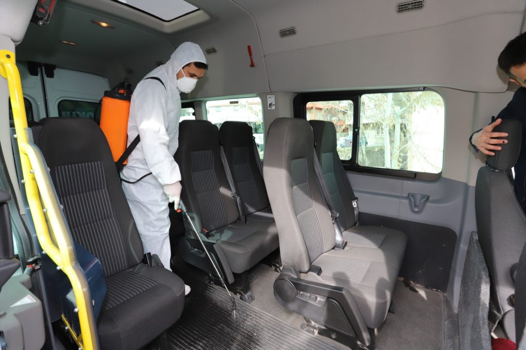 Bu amaçla Temizlik İşleri Müdürlüğü bünyesinde oluşturulan 6 kişilik ekip, toplu taşıma araçlarında, öğrenci servislerinde, otobüs duraklarında, okul servisleri ve personel servis minibüslerinde,